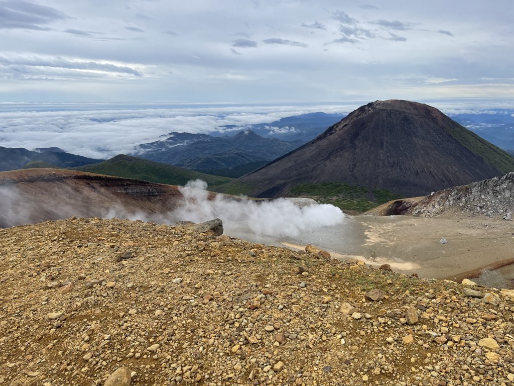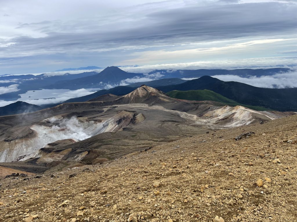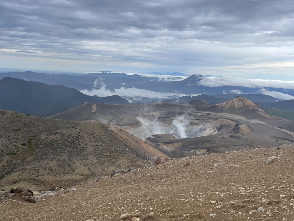 マリモで有名な阿寒国立公園内に位置する活火山。モクモクと噴煙をあげ、近年でも小規模噴火が記録されました。メアカンフスマ(ナデシコ科)やメアカンキンバイ(バラ科)などの高山植物の名前の由来となり、岩場の美しい花達を見ることができます。また、山裾にある北海道三大秘湖オンネトーの湖面には阿寒富士とともにその美しい姿が映し出され、多くの旅人の目を楽しませています。