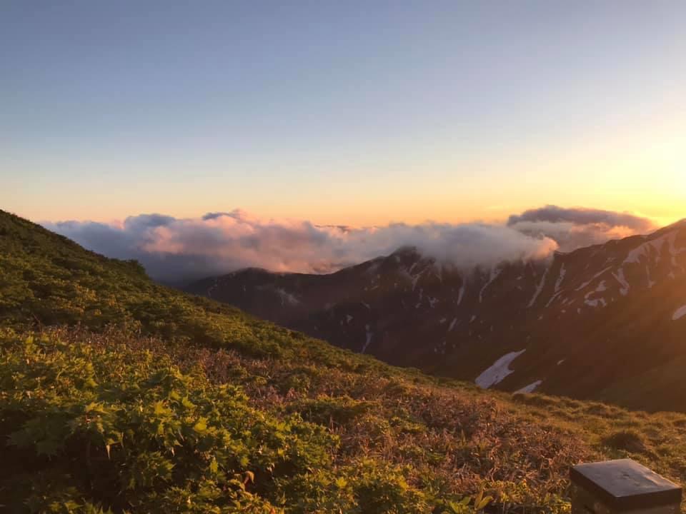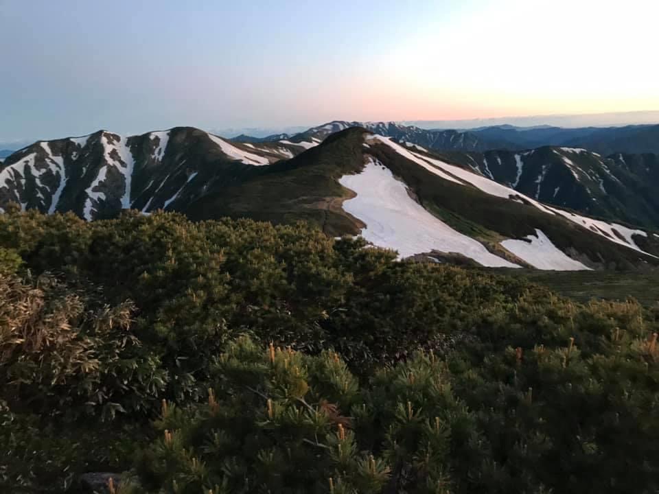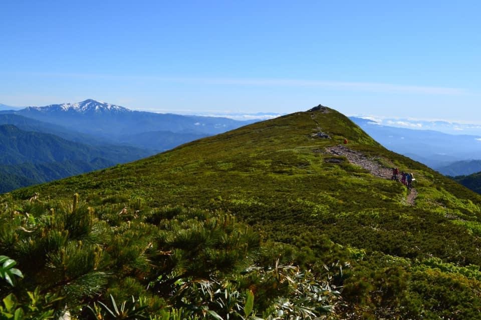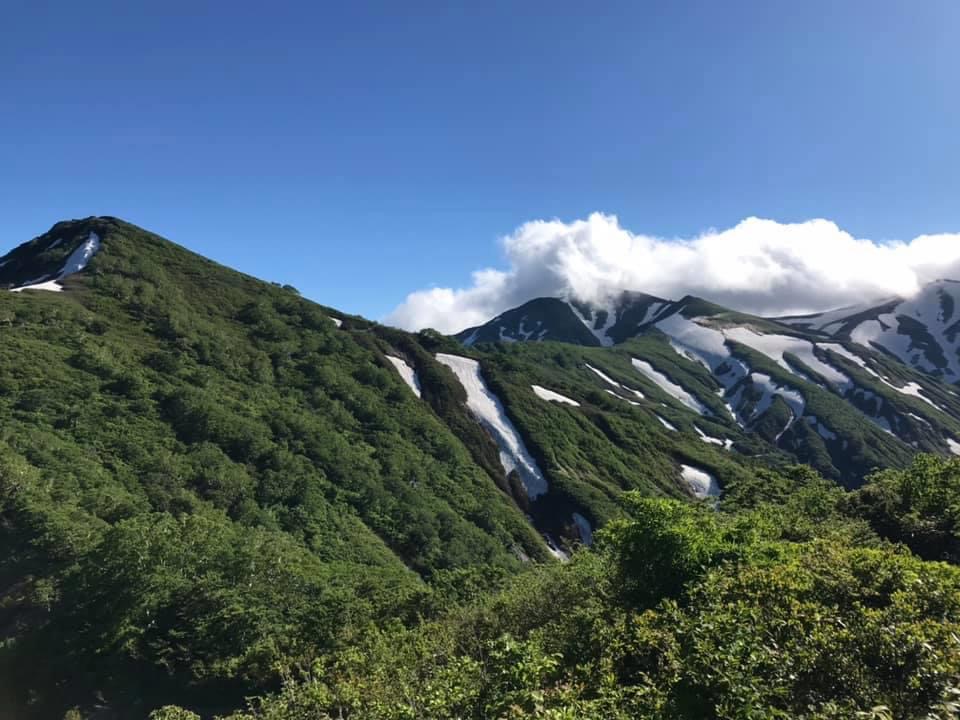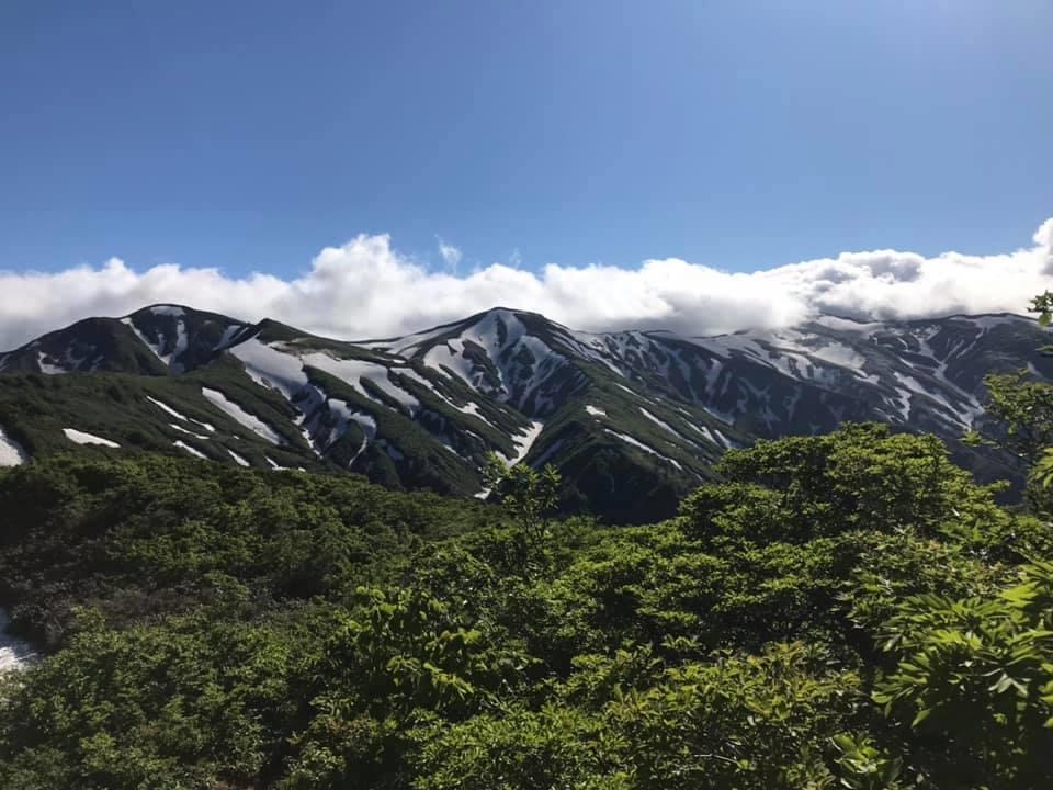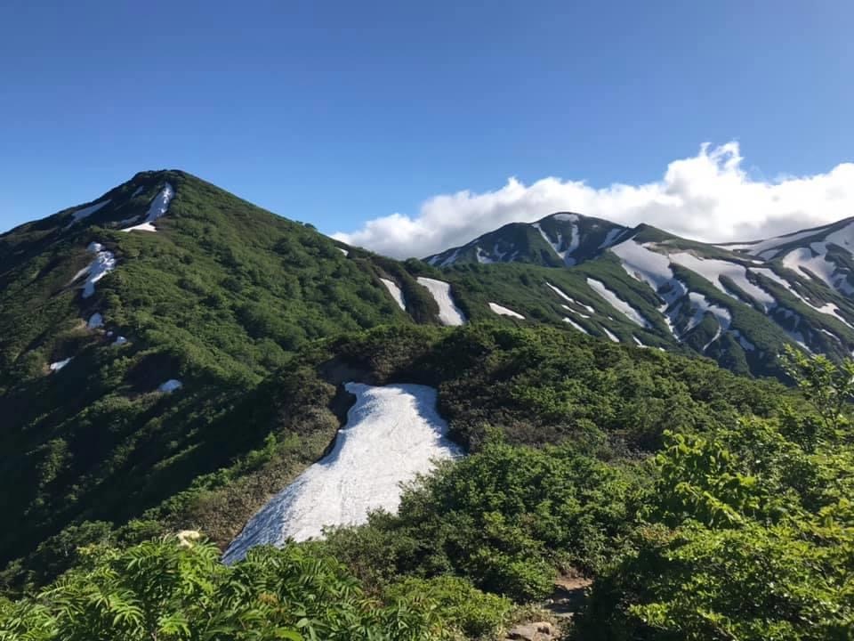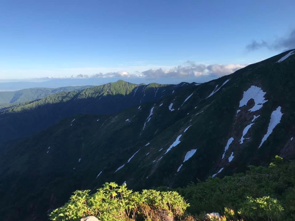 大朝日岳を最高峰とする朝日連峰は、東北南部の日本海側に連なり、山形県と新潟県の県境に位置しています。北の出羽三山、南の飯豊連峰とともに磐梯朝日国立公園に含まれています。変化に富んだ地形と多種の美しい高山植物が楽しめます。また、日本海に近い豪雪地帯に位置するため、夏のシーズン盛期でも豊富な雪渓が残ります。