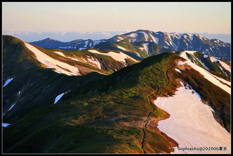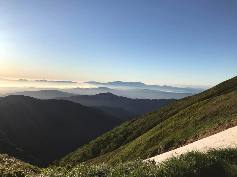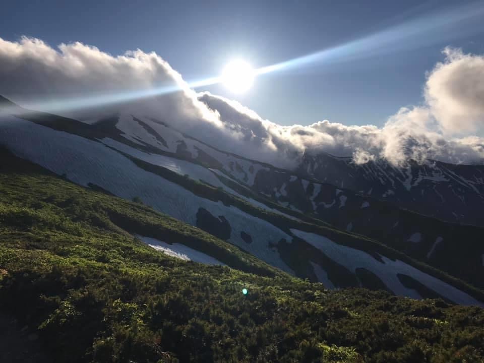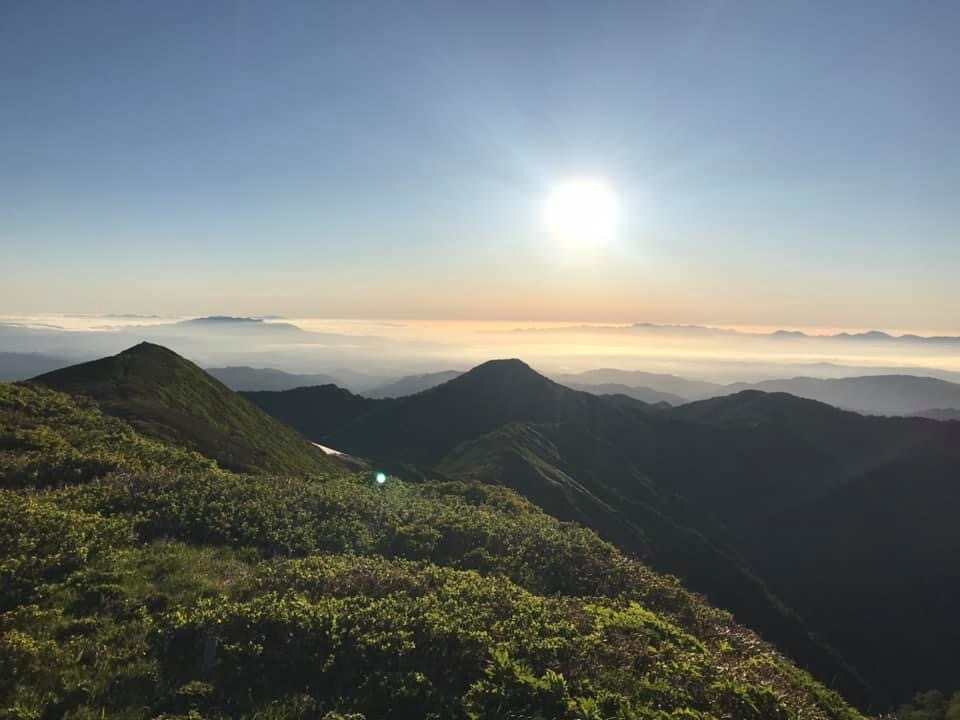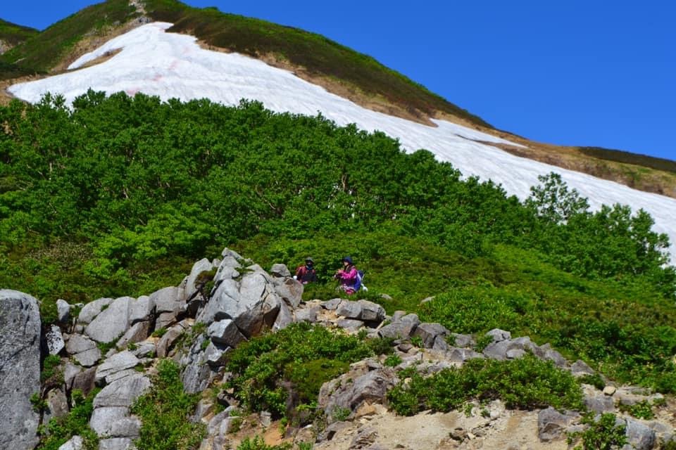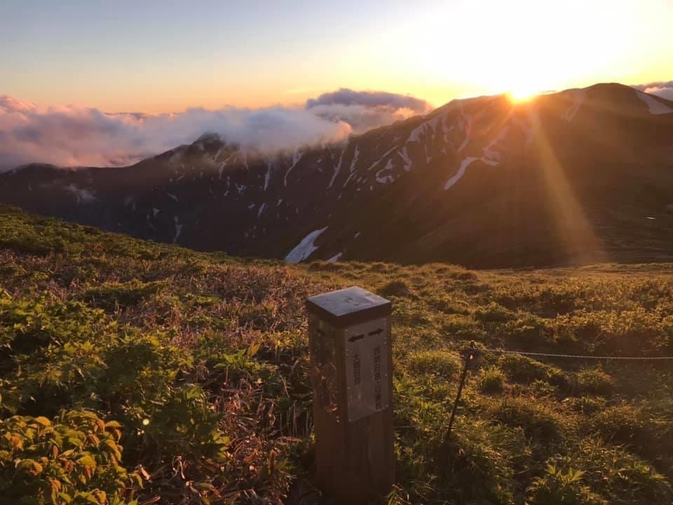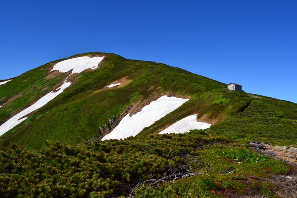 大朝日岳を最高峰とする朝日連峰は、東北南部の日本海側に連なり、山形県と新潟県の県境に位置しています。北の出羽三山、南の飯豊連峰とともに磐梯朝日国立公園に含まれています。変化に富んだ地形と多種の美しい高山植物が楽しめます。また、日本海に近い豪雪地帯に位置するため、夏のシーズン盛期でも豊富な雪渓が残ります。