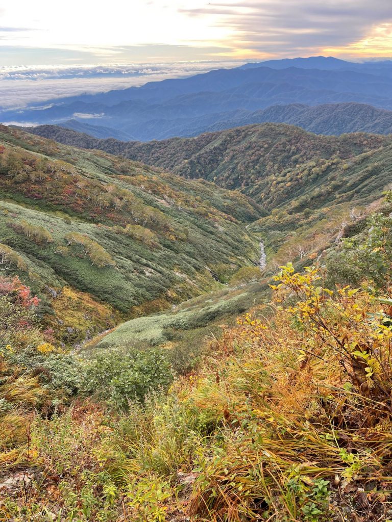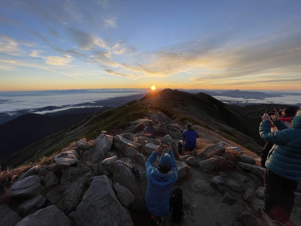 飯豊山は磐梯朝日国立公園内に位置する飯豊連峰の主峰で、山容が大きく、山岳信仰の山でもあります。現在では福島県側の登山道から頂上付近までが福島県で、新潟県と山形県との複雑な県境となっています。固有種イイデリンドウなど多様な高山植物の花々が美しく、万年雪があり、稜線からの眺望も素晴らしい東北の名山です。