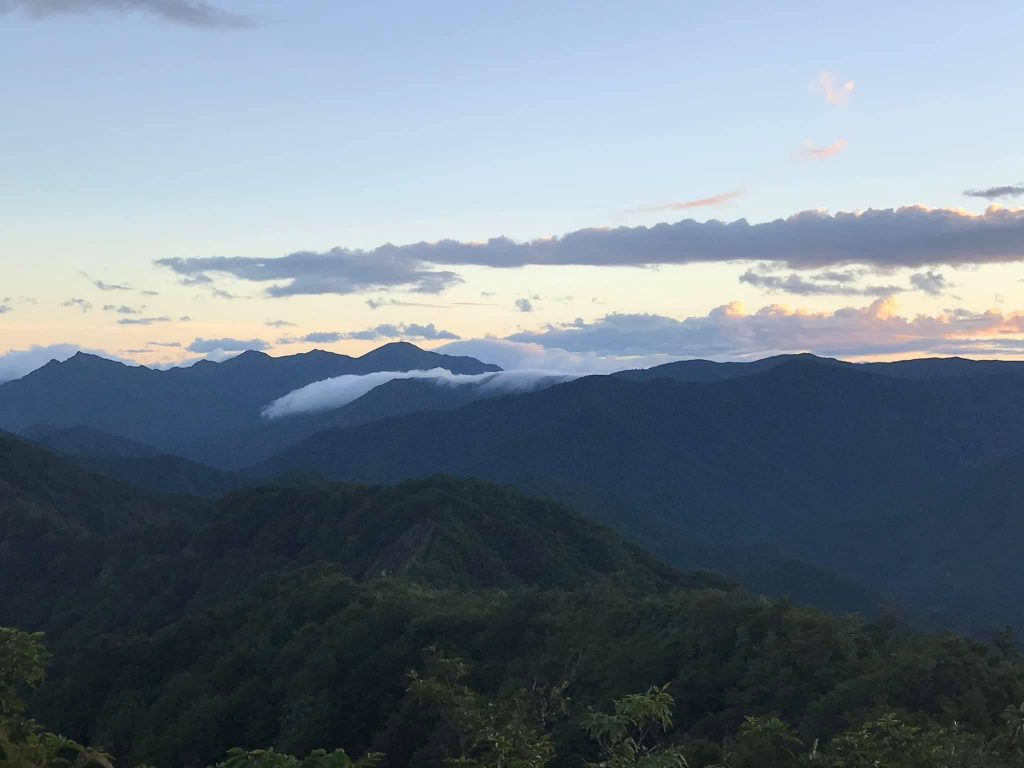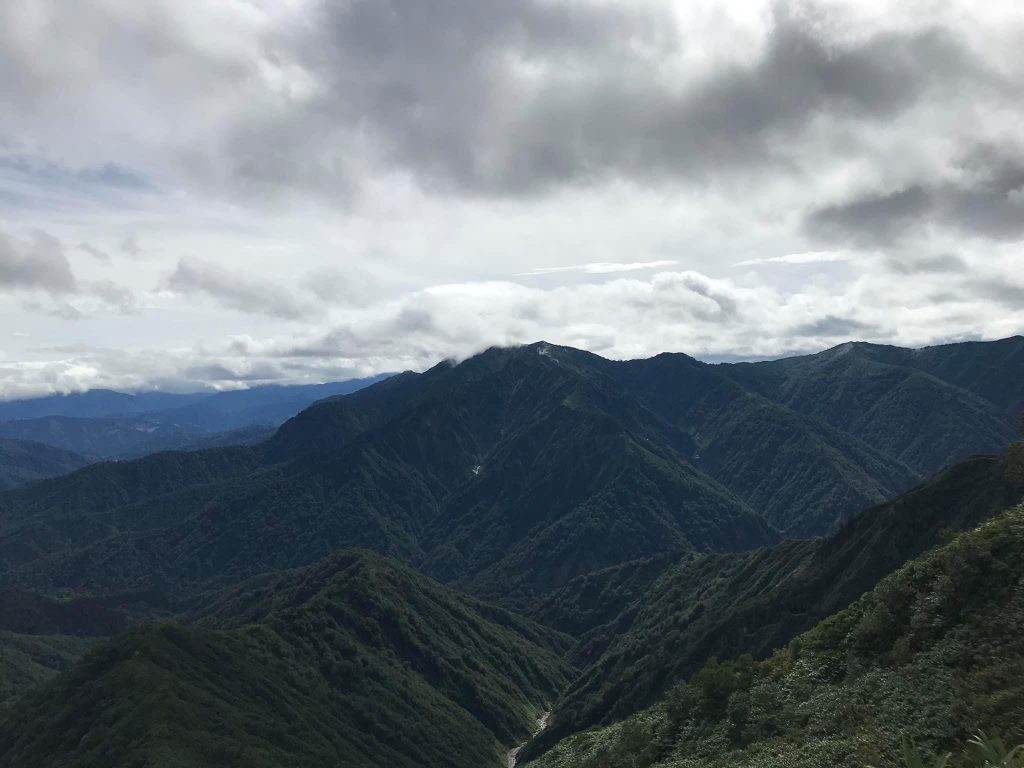 下りはひたすら無心で歩き、無事に枝折峠まで下り終えました。樹海ラインを下っている途中に目に入った越後駒ヶ岳はガスにまかれてしまっており、登山タイミング的にはちょうどよかったのかな?と思いました。その後、大湯温泉の施設であるユピオの日帰り温泉で汗を流して、向かいの奥只見レクリエーション公園で開催されていたイベント(皮や木、布の手作り雑貨の即売市のようでした)をぶらっと流し見て撤収しました。