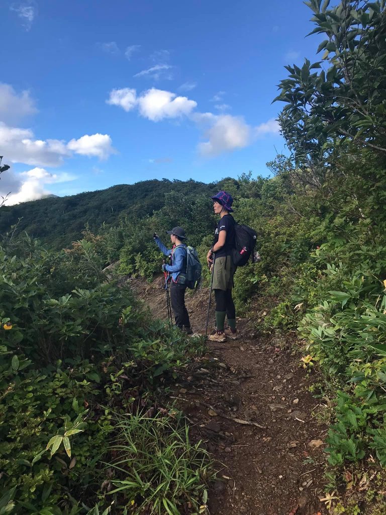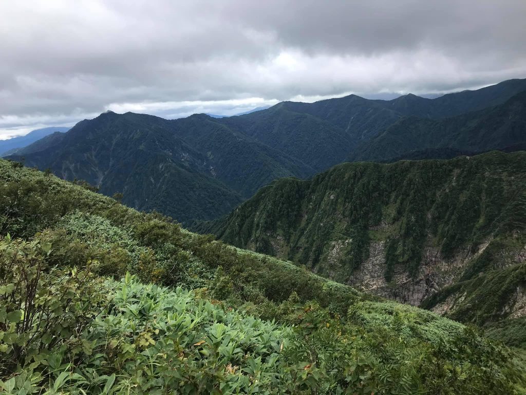 枝折峠から小倉山のあたりまではほとんど標高が上がらず、細かいアップダウンや平坦が続く樹林帯区間です。途中樹林が切れて越後駒ヶ岳や銀山平、荒沢岳などの周辺の景観が望めるものの、基本的にはあまり楽しくはないと思います。またスタートから終始稜線歩きになります。とはいえ樹林で守られているので、森林限界を超えるまでは比較的風があっても守られる感じだと思われます(昨年登頂時がそんな感じでした)。