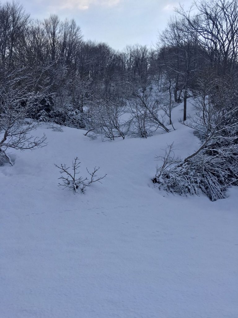 枝折峠から小倉山のあたりまではほとんど標高が上がらず、細かいアップダウンや平坦が続く樹林帯区間です。途中樹林が切れて越後駒ヶ岳や銀山平、荒沢岳などの周辺の景観が望めるものの、基本的にはあまり楽しくはないと思います。またスタートから終始稜線歩きになります。とはいえ樹林で守られているので、森林限界を超えるまでは比較的風があっても守られる感じだと思われます(昨年登頂時がそんな感じでした)。