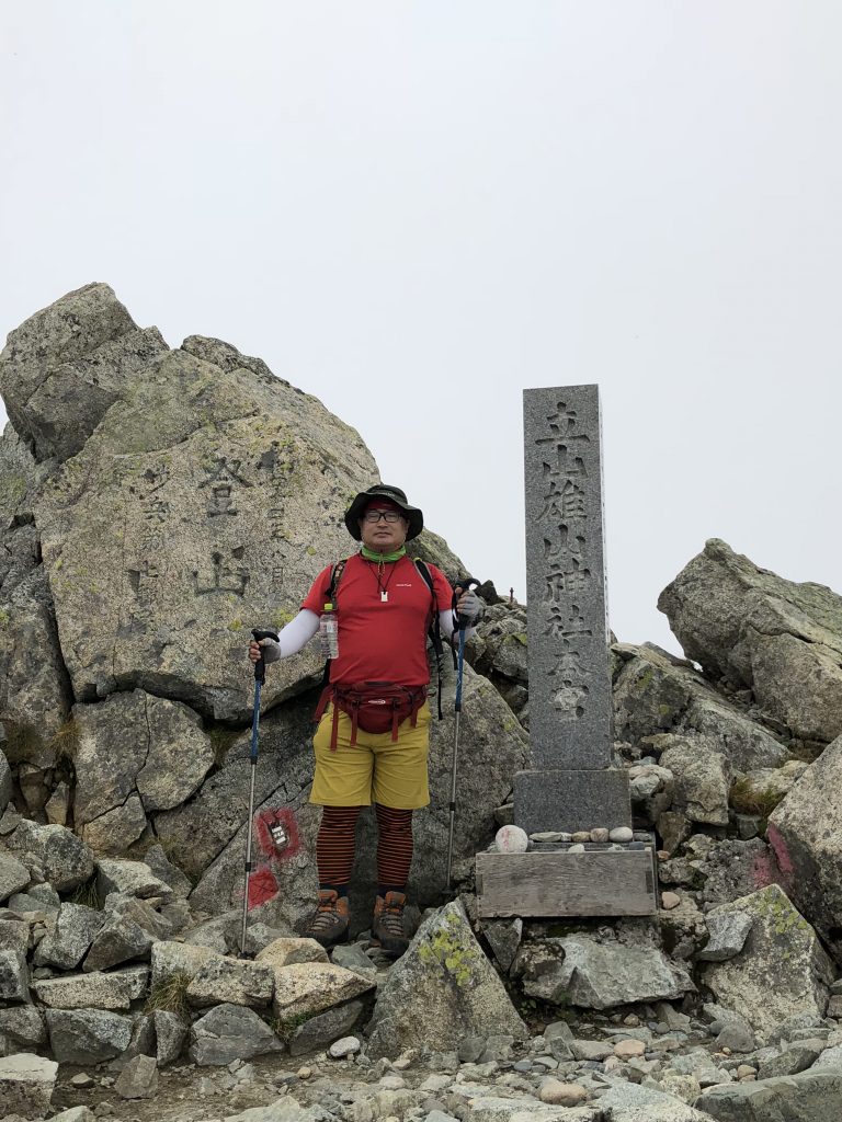 雄山の山頂には、雄山神社本宮がある。峰本社神殿右端の前には、測量の基準である大きな黒御影石の標石(標高点3,003 m)があり[8]、その約70 m南南西に一等三角点(標高2,991.59 m、点名は立山)の標石が設置されている[9][10]。