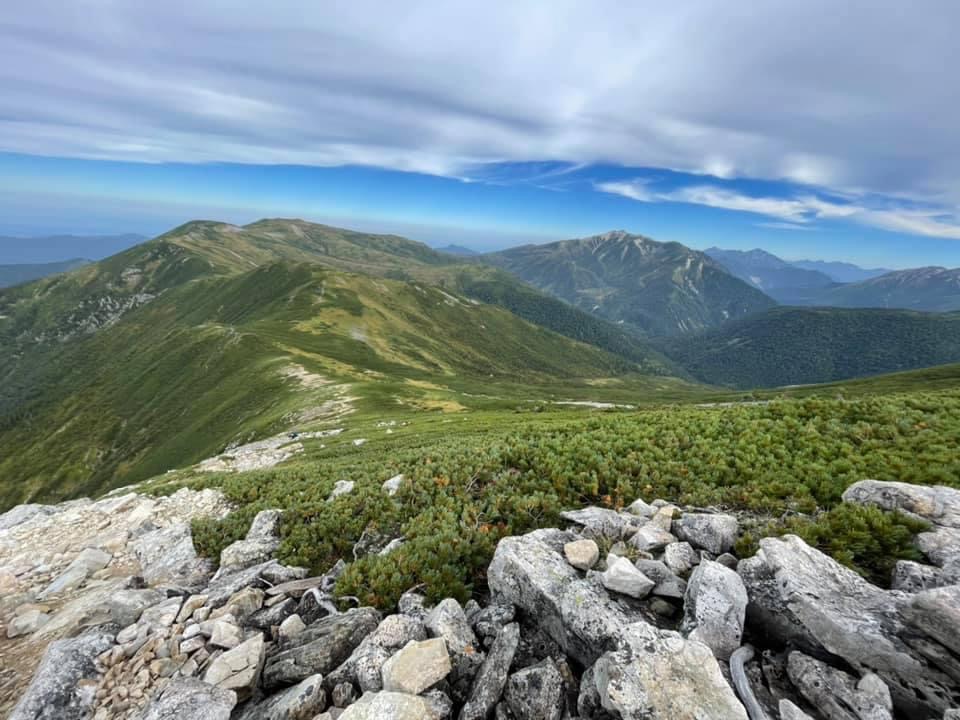 富山県と岐阜県にまたがり、北アルプス中央部の三俣蓮華岳の西方に位置します。山頂部は中生代の手取統の礫岩が見られます。東側は氷河時代の氷河にえぐられ、カールの底には羊群岩やモレーンがあります。三俣蓮華岳~黒部五郎岳~薬師岳の縦走は通称西銀座ダイヤモンドコースと呼ばれ、稜線では雄大なパノラマが展開し、一面に咲き広がるお花畑を楽しめる魅力的なコースです。