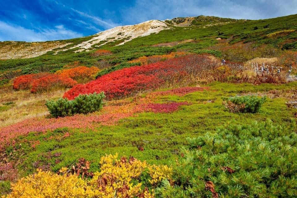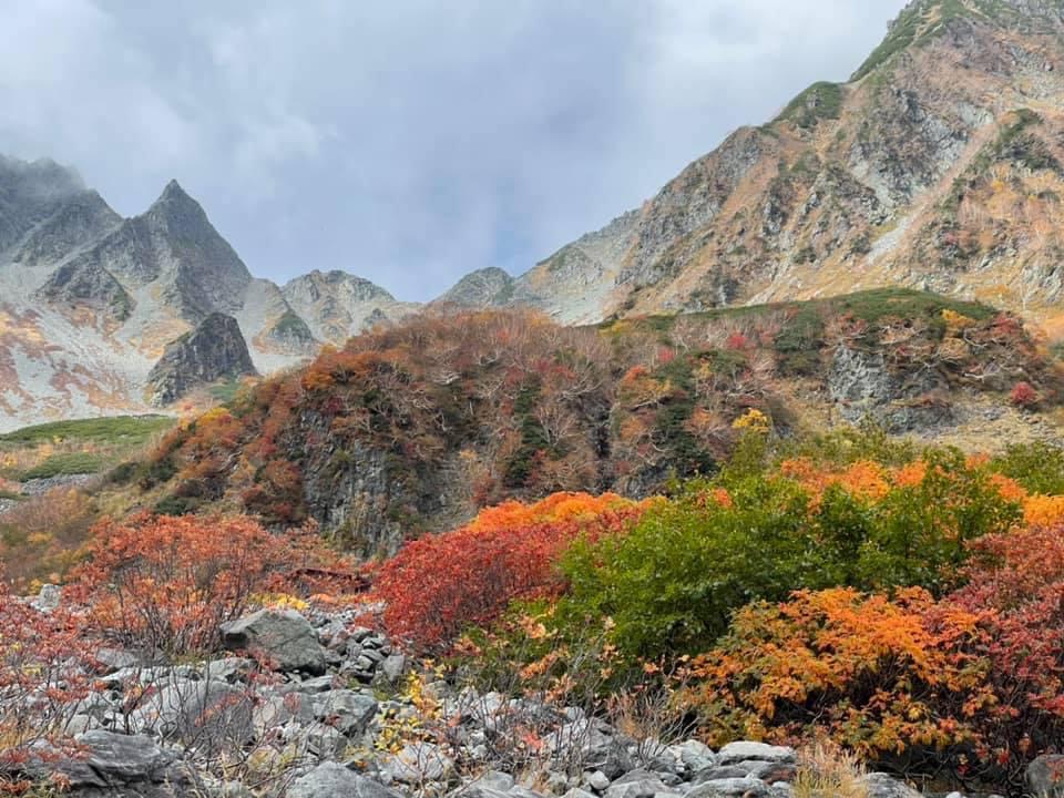 穂高岳は、日本第3位と言われる最高峰の奥穂高岳を盟主としています。豪快で重量感のある崇高な山容、荒々しい岩壁や雪渓、氷河地形に展開するお花畑と秋の紅葉など、魅力に溢れる、わが国を代表する名峰です。標高3000m前後の峰々は数多くの岩壁・岩峰が連なり、多くの梯子や鎖の設置されたルートではスリルある登山を楽しむことができます。
