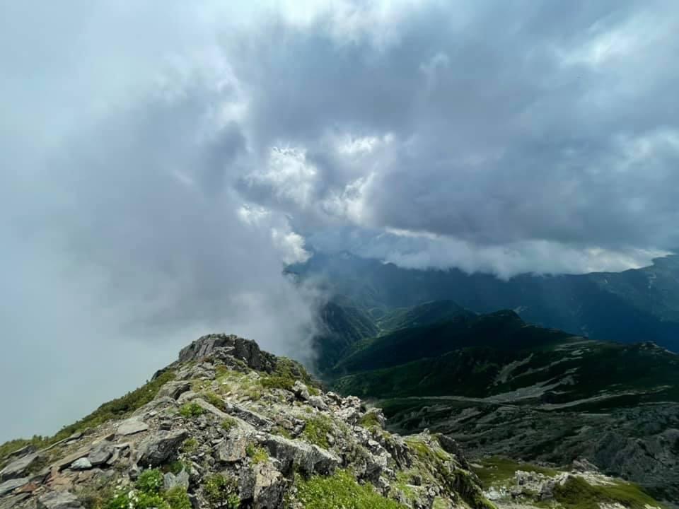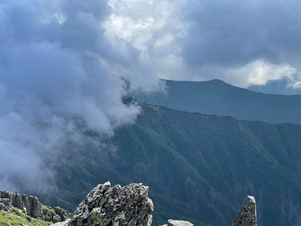 南アルプスの盟主にして、日本第2位の高峰です。古くは、平家物語にも登場し、近隣の間ノ岳、農鳥岳とともに、白根三山と呼ばれています。奥ゆかしく、高潔な気品を備えるその姿から「哲人」と称されます。東面の大岩壁は「バットレス」と呼ばれ、古くからクライマーの憧れの岩壁です。夏には、固有種キタダケソウをはじめ、100種以上の高山植物が見られる日本有数の高山植物の宝庫です。