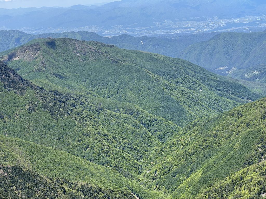 もっと山慣れした人には、身延線の身延からバスで新倉まで来て、転付(でんつく)峠を越えて二軒小屋に入り、大井川の東俣、西俣の合流地点から蝙蝠(こうもり)尾根に取り付き、北俣岳から塩見岳へ達するコース(二軒小屋から山頂まで9時間)が面白い。以前のようなヤブや倒木は整備されて、かなり歩きよくなっている。
