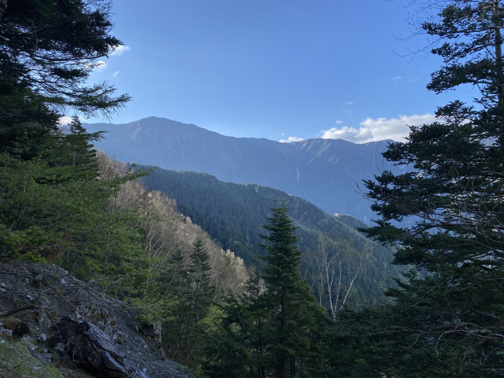 この山はきれいな三角形をしているので、山頂に雪がある時期には、駿河湾岸からでもはっきり分かる。周りに高い山がないので、独立した山のようにも見える。標高3000mを超える南アルプスの山の中では、山頂へ立つまでのアプローチが長いため、どうしても後まで登れずに残る山のようだ。