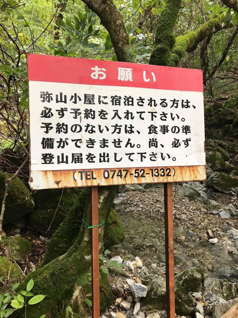 北緯34度16分04秒東経135度54分50秒)、1300年の伝統を守るための協力を依頼した看板が設置されている(これに反対する動きについては女人禁制を参照)。しかし、1929年(昭和4年)には既に女性が登山していたとされ、一部では入れるようになったともいわれる[5]。