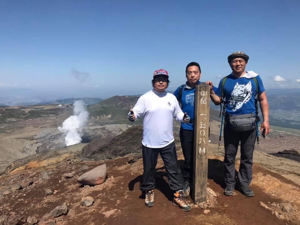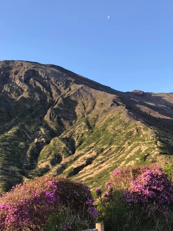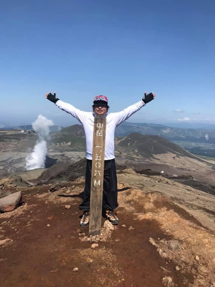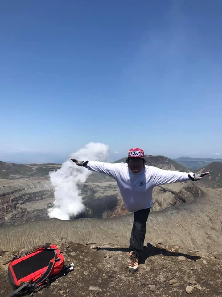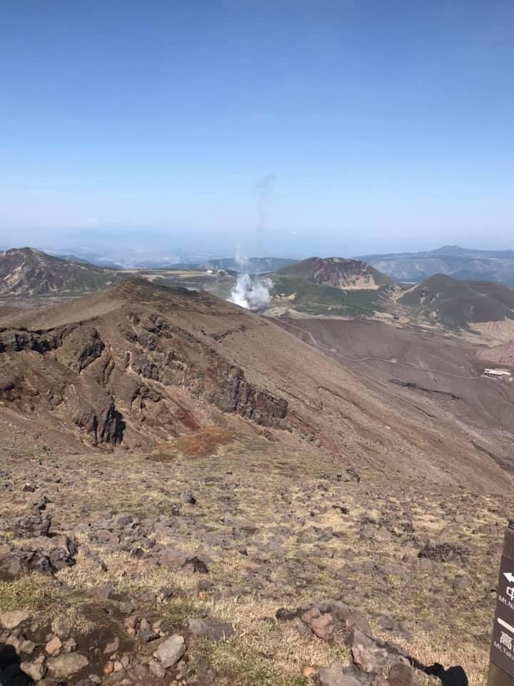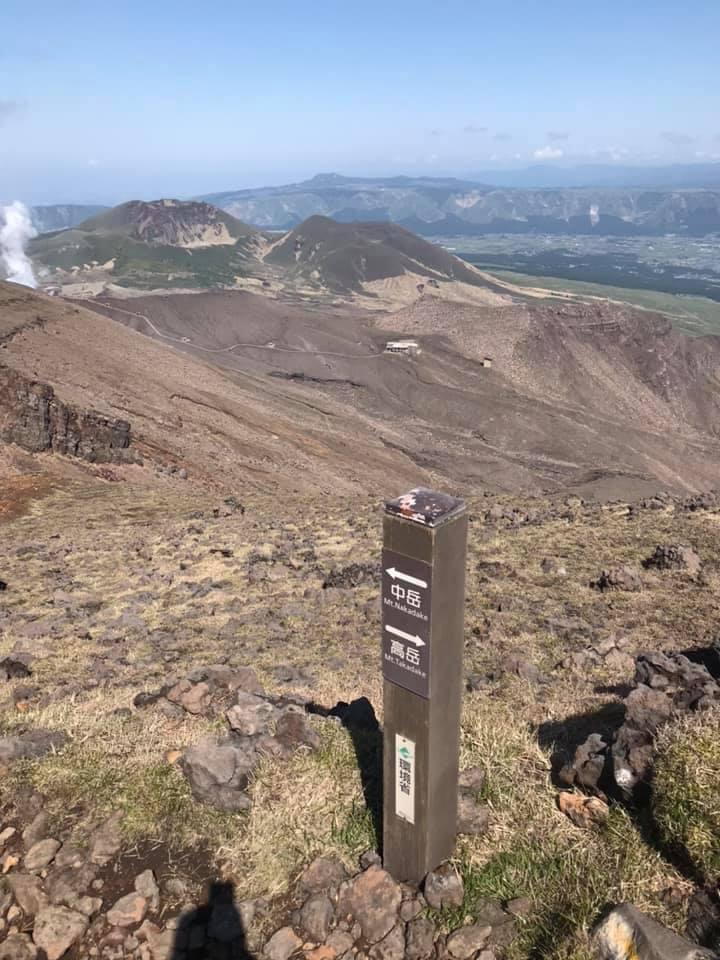 阿蘇山 百名山 2021五一黄金周第二次爬阿蘇山。2020年第一次爬阿蘇山时,火山活动比较强烈,完全个人包场整座山。这次爬阿蘇山,几个登山口都停满了車。现在是爬阿蘇山的好机会❗️说不定哪天喷火加剧,阿蘇山就没人敢爬了。標高:1,592m「火の国」熊本を代表する阿蘇山は世界最大級のカルデラをもつ活火山。中央火口丘群の5つの峰は阿蘇五岳と呼ばれ、一般的に阿蘇山とはこれらを含めて指します。最も一般的なコースは酔仙峡から最高峰の高岳、中岳をめぐるコースで、登山道沿いにはミヤマキリシマ(ツツジ科)の群落があり、新緑の頃ピンクに染められた山肌は、まさに「火の国」にふさわしい彩りです。