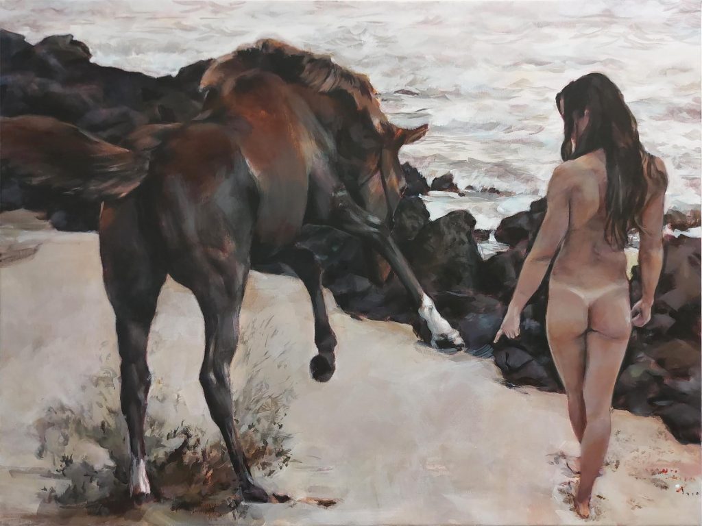 发髫马尾,英姿张扬。腿筋结实,玉腿修长,动如野马,股肌弛张。手臂灵敏,仰手飞猱,俯身马蹄。