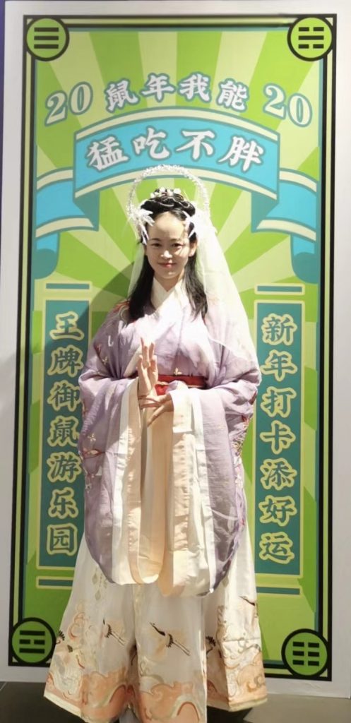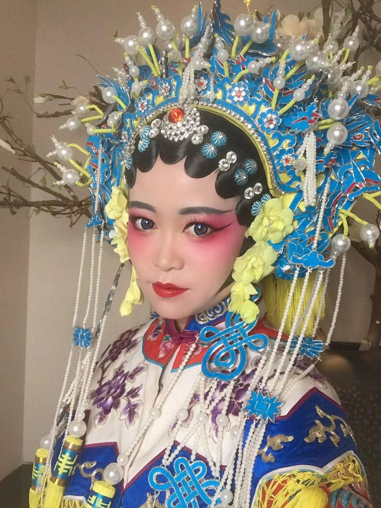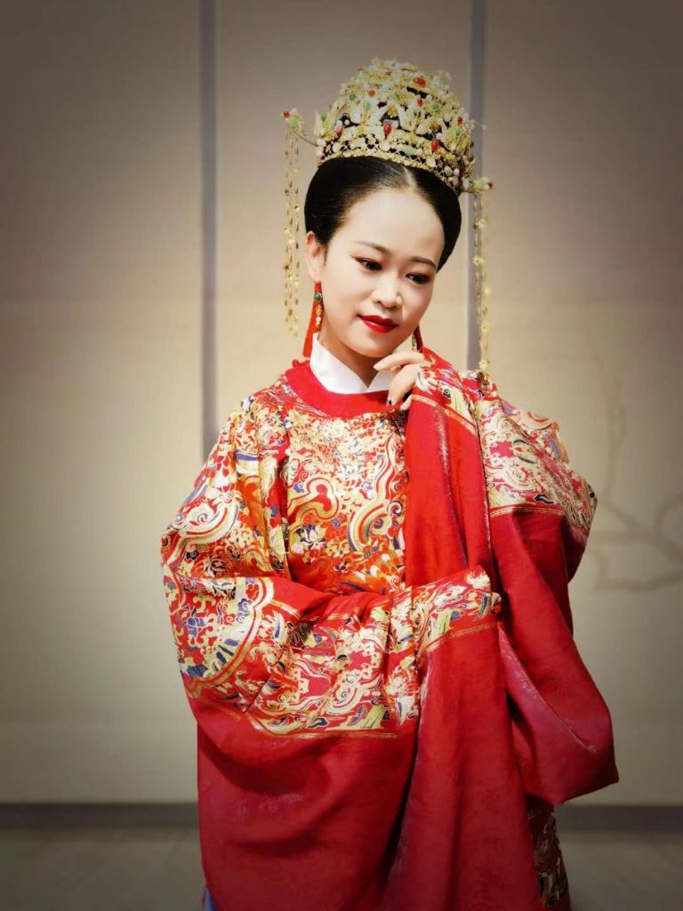 采光智眸,清颊缀靥。身量硕长,杨柳婀娜。凤舞九天,仙子伴歌,日照天华,肃静山河。