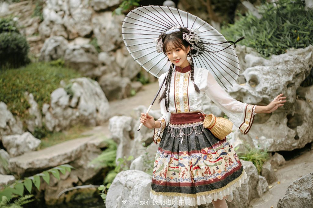 三女随行,皆清秀俊朗,皓齿明眉,冰心玉壶,重装负肩。