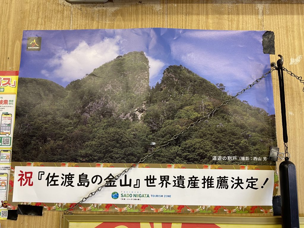 佐渡島有二条山脉。一条1000米高ドンデン山脉,主峰金北山2172米。一条600米佐西山脉,主峰大地山1645米。两条山脉平行在岛的各一边。夹在山脉中间是国仲平野,与海平面几乎等高,建筑密密麻麻。由于対馬海流の影響,冬高2度夏低2度。俯瞰佐渡島全貌如人的肺部影像。佐渡島金山出産72吨黄金,现开探废止,成旅游景点,登錄为世界自然遗产。