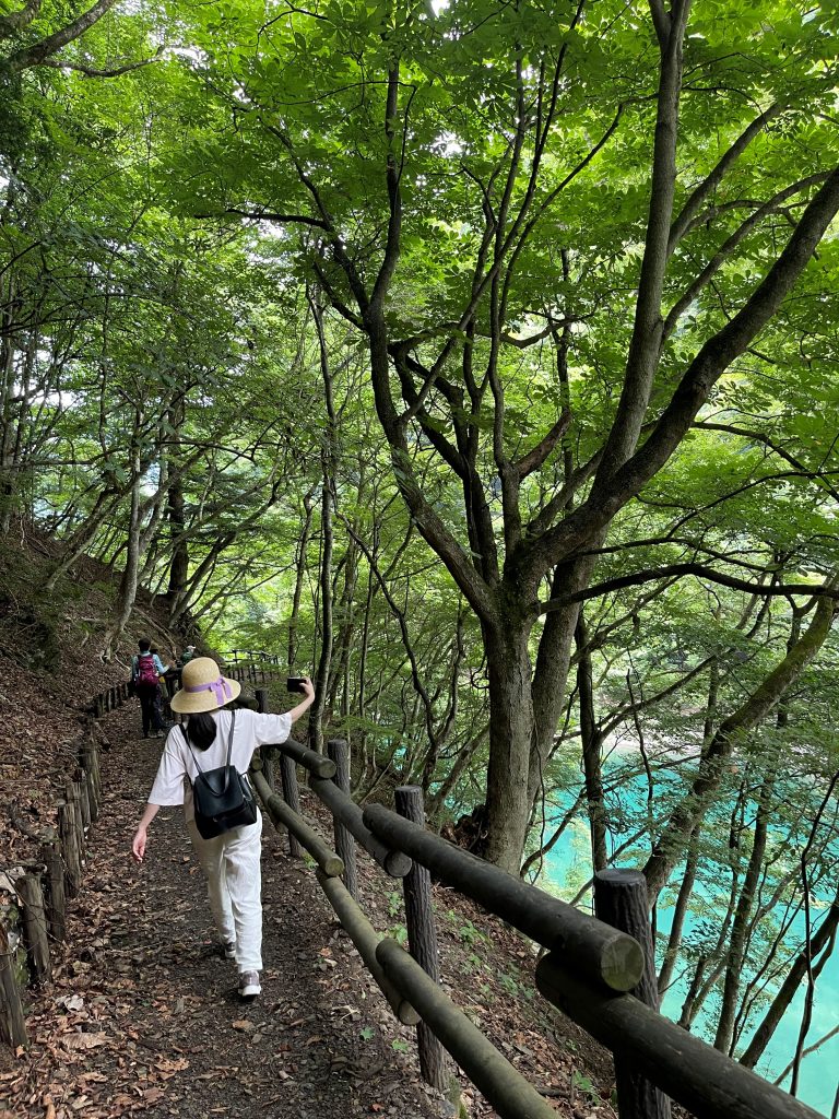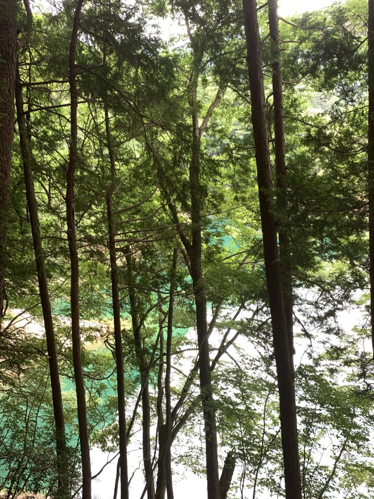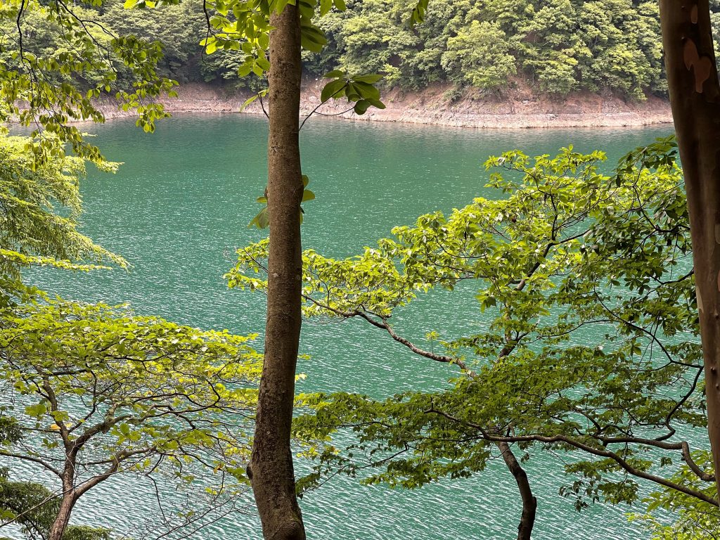 美しい景色を眺めながら、奥多摩湖の周囲を歩くこともできる