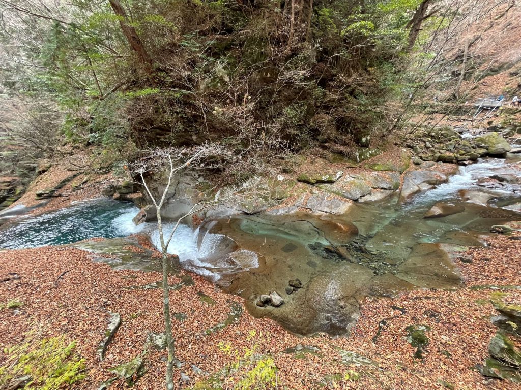 渓谷内は遊歩道が設けられ、渓谷ならではの四季の変化が楽しめます。特に5月のシャクナゲや秋の紅葉の時期には、多くの観光客が訪れます。