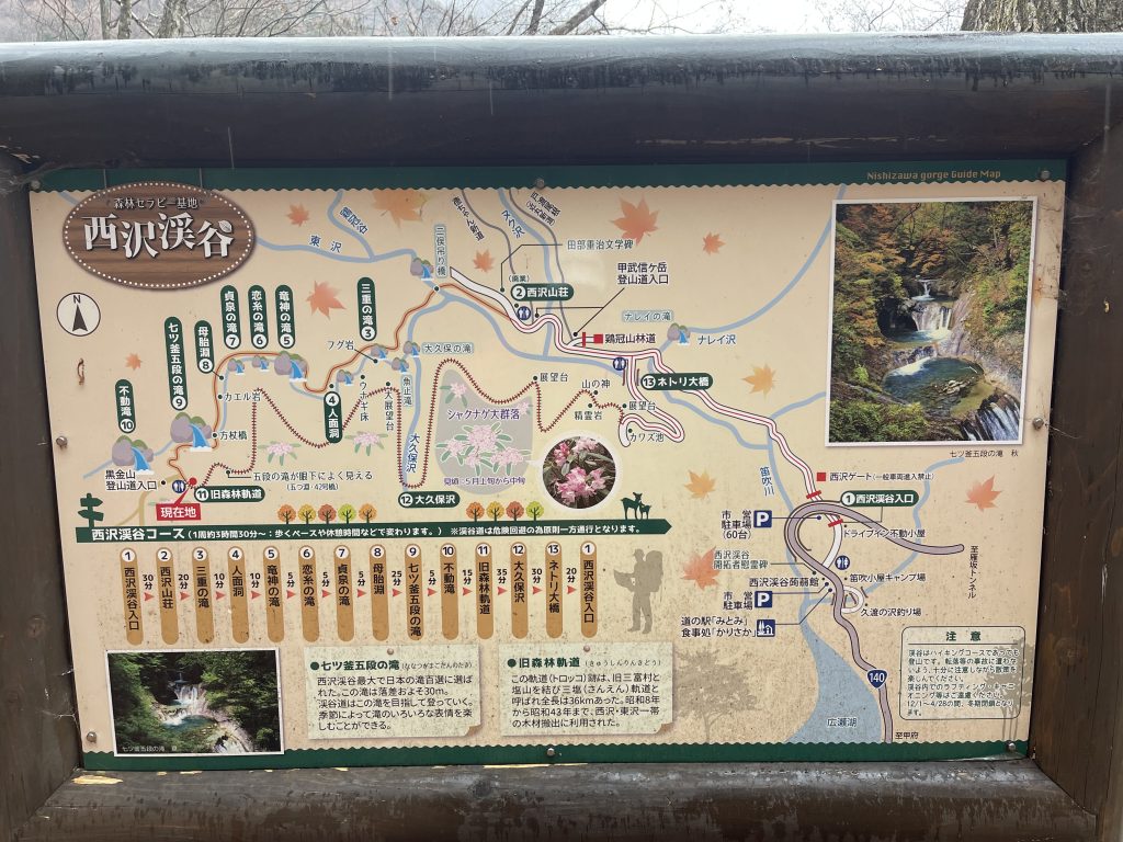 アクセスJR中央本線山梨市駅からバスで60分 西沢渓谷入口バス停下車すぐ